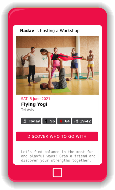Use WhoToGoWith on the web-app or as a mobile-app, the experience is nothing like a typical dating app. Here you'll discover people who just like you want to go the event you're interested in going to.